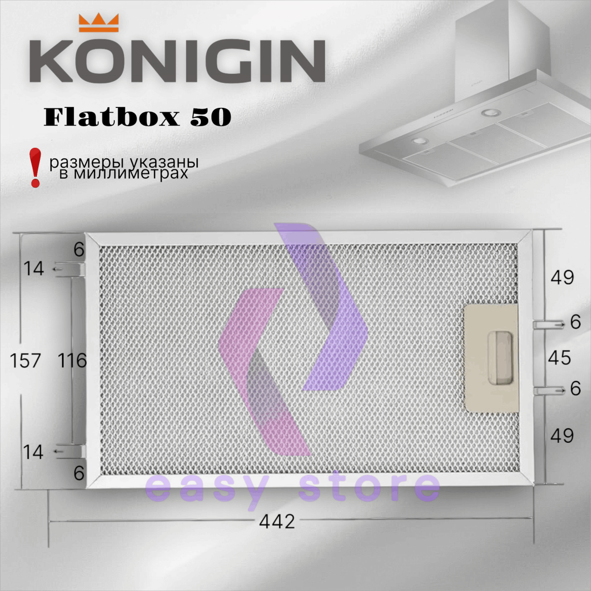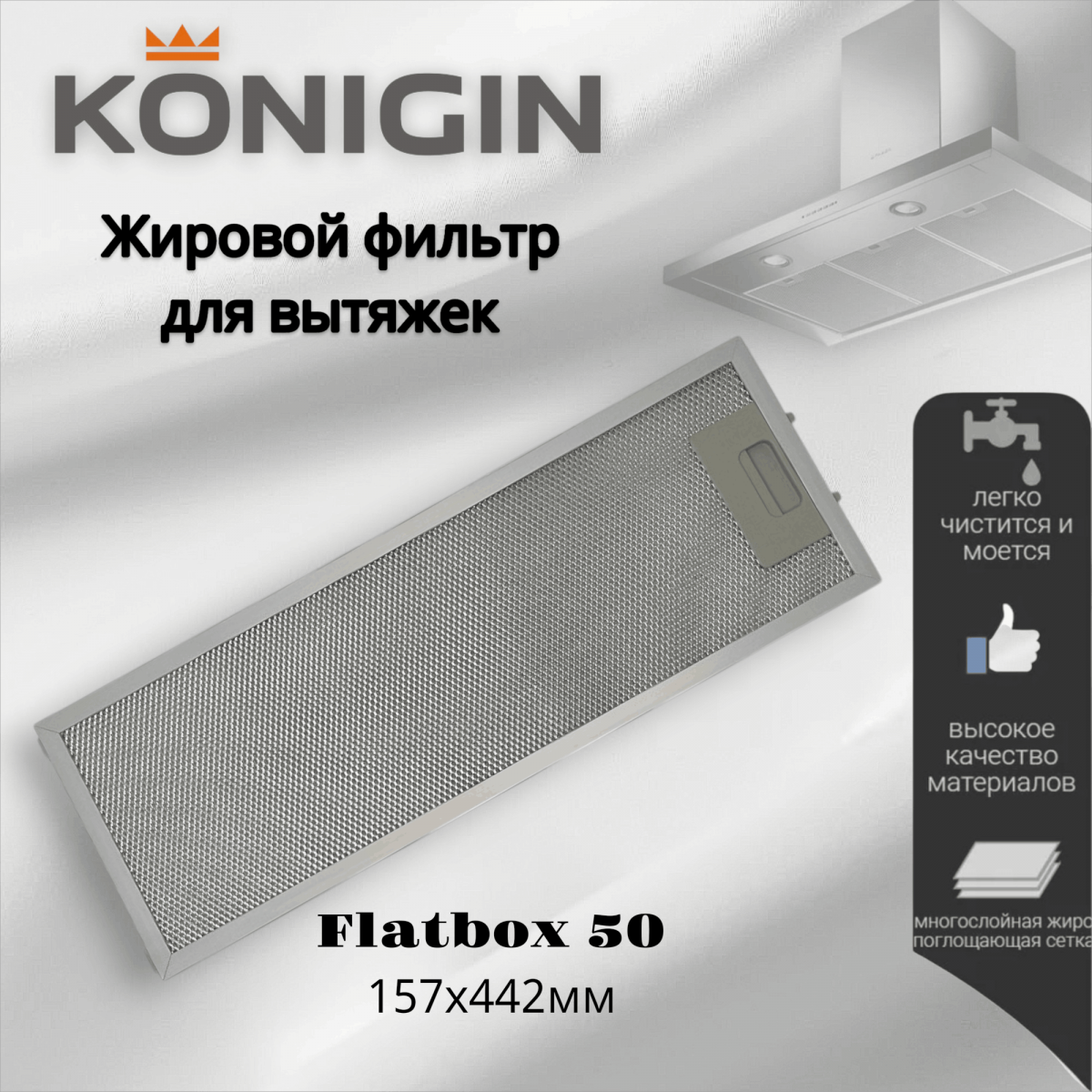 Жировой фильтр для вытяжек Konigin Flatbox 50 157х442мм