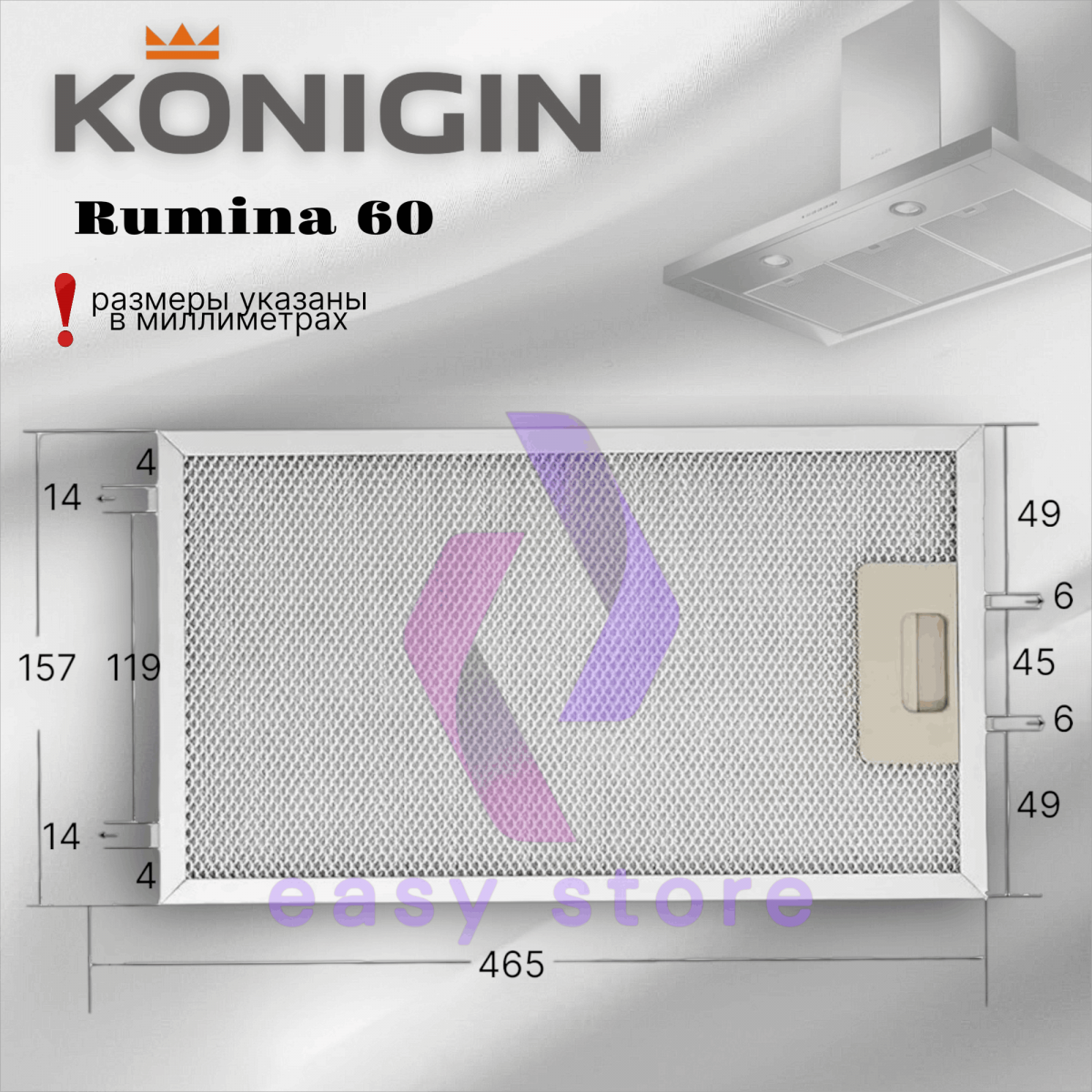 Перед покупкой измерьте жироуловитель для вытяжной системы и убедитесь, что размеры совпадают с данной моделью.