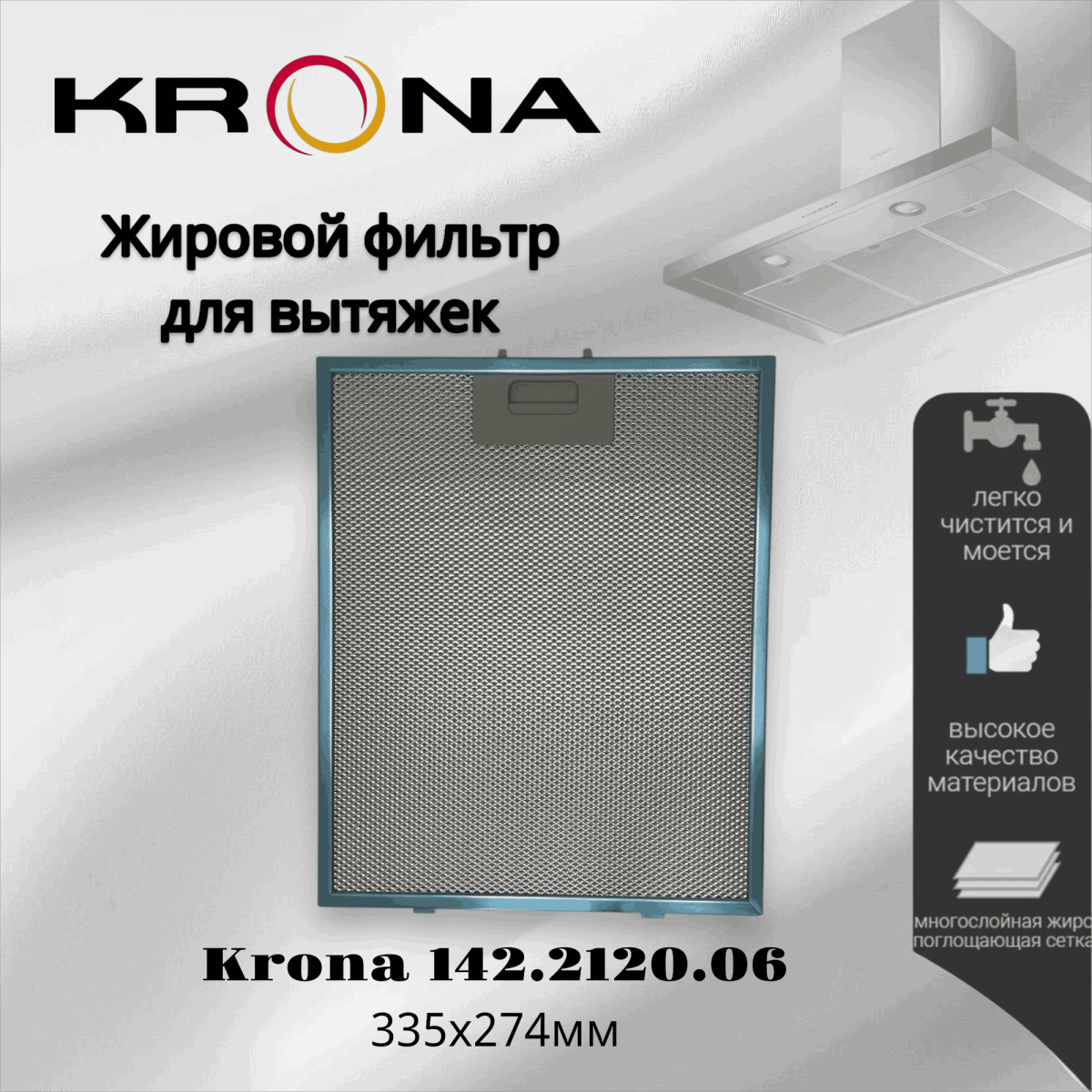Жировой фильтр для вытяжек Krona 274х335мм - это отличное решение для тех, кто хочет сохранить чистоту и эффективность своей вытяжки. Он прост в установке и обслуживании, что делает его идеальным выбором для любого домашнего хозяйства.