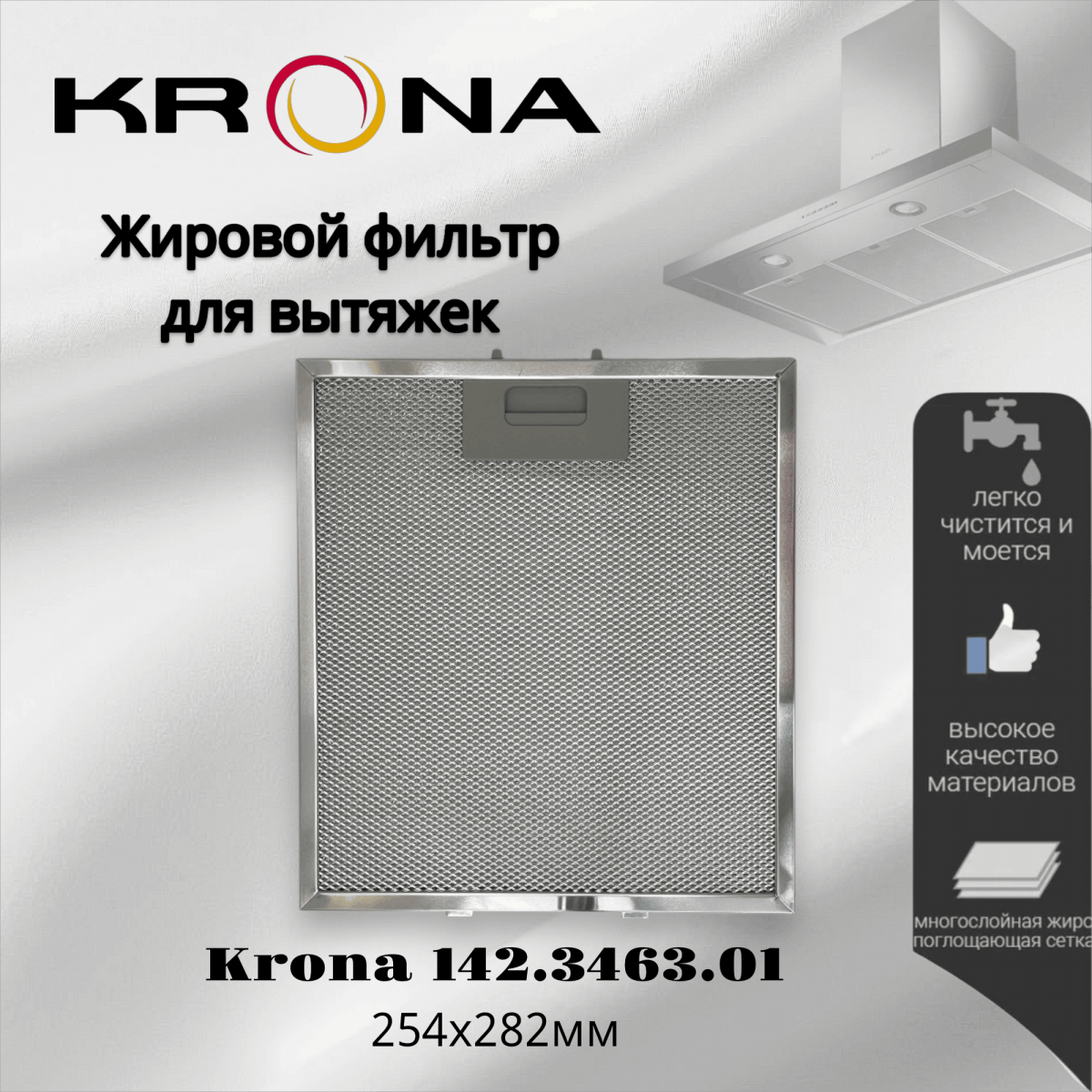 Жировой фильтр для вытяжек Krona - незаменимый аксессуар для вашей вытяжки! Этот фильтр разработан специально для эффективной очистки воздуха от жировых частиц и неприятных запахов, образующихся при готовке. Благодаря своей превосходной конструкции и высококачественным материалам, он обеспечивает максимальную эффективность и долговечность. Сделанный из прочного и надежного материала, этот фильтр обеспечивает надежную защиту вашей вытяжки от накопления жира и загрязнений. Он легко устанавливается и подходит для вытяжек с размерами 254х282мм. Благодаря использованию современных технологий и инновационных решений, этот фильтр обеспечивает оптимальную вентиляцию и эффективное удаление жира. Вы сможете наслаждаться свежим и чистым воздухом в своей кухне, без неприятных запахов и загрязнений. Не упустите возможность приобрести этот превосходный жировой фильтр для вытяжек Krona и создать комфортные условия в вашей кухне. Закажите его прямо сейчас и наслаждайтесь чистотой и свежестью воздуха каждый день!