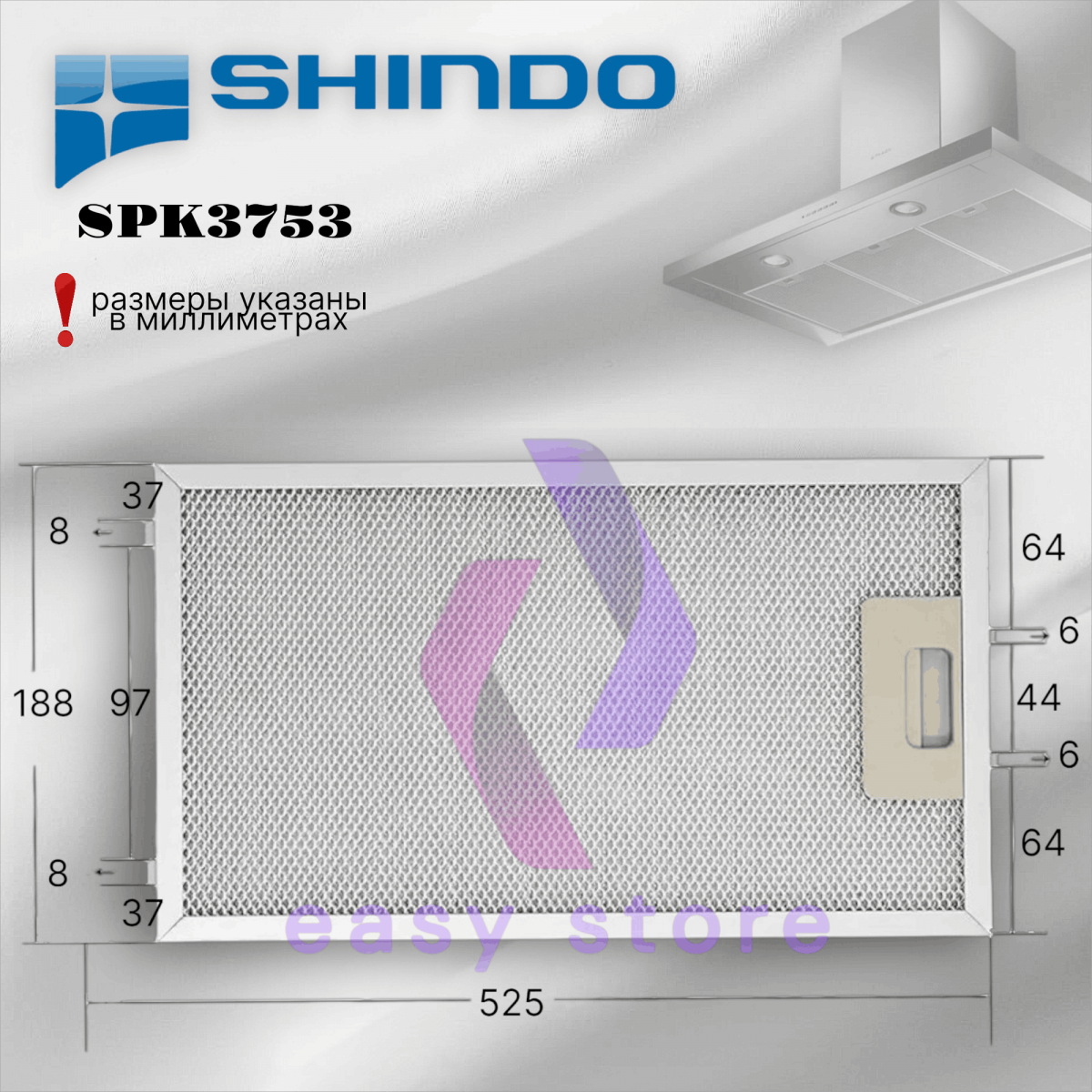 Жировой фильтр для вытяжек Shindo SPK3753 525х188мм