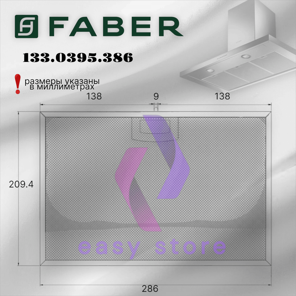Жировой фильтр для вытяжки Faber 133.0395.386 286х209.4мм