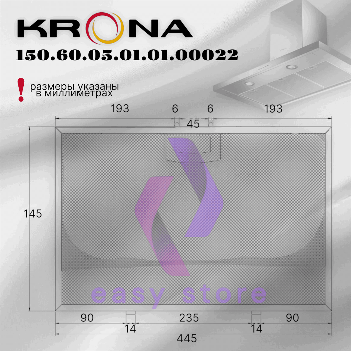 Жировой фильтр для вытяжки Krona 150.60.05.01.01.00022 145х445мм